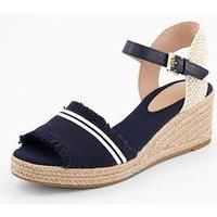 Tommy Hilfiger Fringe Canvas Medium Wedge Size & Fit Standard fit Heel height 6cm Available in sizes 36 - 42 (EU 36:UK 3, EU 37:UK 4, EU 38:UK 5, EU 39:UK 6, EU 40:UK 7, EU 41:UK 8, EU 42:UK 9) Details Fringe Canvas Medium Wedge by Tommy Hilfiger Space Blue These wedge-heel sandals are crafted from canvas and feature a fringed trim for a playful twist on the classic espadrille look. Canvas upper Cotton lining Thermoplastic rubber outsole Wedge heel Open toe Rope detail on midsole Fringe detailing on upp...