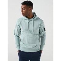 Calvin Klein Jeans Badge Hoodie Size & Fit True to size - order your usual size Regular fit Available in sizes S - 2XL Details Badge Hoodie by Calvin Klein Jeans Grey Drawstring hood Long sleeves Front kangaroo pocket Logo patch on sleeve Material & Care Material Content: 100% Cotton Washing Instructions: Machine Washable - Manufacturers part number: WOVJ6