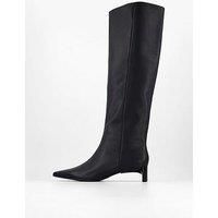 Calvin Klein Set Back Knee-High Boot With Kitten Heel Size & Fit Standard fit Heel height: 4cm/1.6in Shaft height: 48cm/18.9in Available in sizes 36 - 41 (EU 36:UK 3, EU 37:UK 4, EU 38:UK 5, EU 39:UK 6, EU 40:UK 7, EU 41:UK 8) Details Set Back Knee-High Boot With Kitten Heel by Calvin Klein Black Supple leather upper Airfit insock to absorb impact and reduce fatigue Cotton twill lining Square toe Discreet easy-fit inner side zip Lightweight faux leather outsole Comfortable lacquered half-block kitten he...