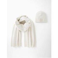 Calvin Klein Ck Beanie And Scarf Set Size & Fit One Size Details Ck Beanie And Scarf Set by Calvin Klein White Knitted scarf with logo design Knitted beanie with turn up cuff and logo patch Material & Care Material Content: VISCOSE (72%), RECYCLED POLYESTER (28%)