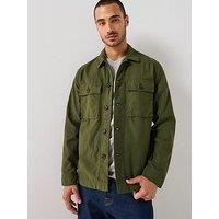 Tommy Hilfiger Garment Dyed Utility Overshirt Size & Fit Regular fit Available in sizes S - 2XL (S:36"-38", M: 40", L:42", XL:44", 2XL:46") Details Garment Dyed Utility Overshirt by Tommy Hilfiger Green Collar Button fastening Long sleeves with button cuffs Patch pockets with flap and button fastening Material & Care Material Content: 100% Cotton - Manufacturers part number: MW0MW41873