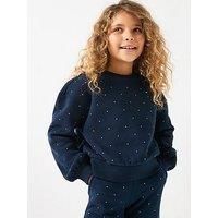 Tommy Hilfiger Girls Festive Stud Crew Neck Sweatshirt - Navy