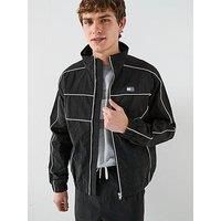Tommy Jeans Piping Detail Flag Jacket Size & Fit Regular fit Regular length Available in sizes S - 2XL (S:36", M:38", L:40", XL:42", 2XL:44") Details Piping Detail Flag Jacket by Tommy Jeans Black Funnel neck Long sleeves with elasticated cuffs Zip up fastening Side slip pockets Piping detail Tommy Jeans branding on front and back Material & Care Material Content: 100% Polyamide