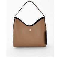 Tommy Hilfiger Icon Shoulder Bag - Nordic Taupe Size & Fit 27.5 x 11.5 x 26cm Capacity 4L Details Icon Shoulder Bag - Nordic Taupe by Tommy Hilfiger Beige Shoulder bag Pebble grain finish Push-button closure One top handle One main compartment Detachable zipped contrast coin purse TH monogram plaque on front Tommy Hilfiger branding Material & Care Material Content: POLYURETHANE (100%)