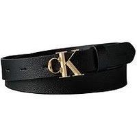 Calvin Klein CK Buckle Belt Size & Fit 25MM Available in sizes 70-100 Details CK Buckle Belt by Calvin Klein Black Pin fastening Single keeper loop CK logo Antique gold hardware Material & Care Material Content: COW FULL GRAIN LEATHER (100%)
