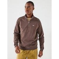 Tommy Jeans Regular Fit Badge 1/4 Zip Sweatshirt Size & Fit Regular fit Available in sizes S - 2XL (S:36", M:38", L:40", XL:42", 2XL:44") Details Regular Fit Badge 1/4 Zip Sweatshirt by Tommy Jeans Brown Funnel neck Quarter zip Long sleeves with ribbed cuffs Ribbed hem Logo on chest Material & Care Material Content: 60% Cotton 40% Polyester Washing Instructions: Machine Washable