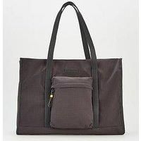 Tommy Hilfiger TH Casual Tote Bag Size & Fit One size Large Details TH Casual Tote Bag by Tommy Hilfiger Dark Grey Tote bag 2 top handles Zip fastening 1 interior zipped pocket Exterior zip fastening pouch Material & Care Material Content: 85% Polyester 15% Leather About the brand:
