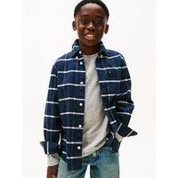Tommy Hilfiger Boys Window Pane Check Long Sleeve Shirt Size & Fit Regular fit Available in sizes 4 years - 16 years Details Boys Window Pane Check Long Sleeve Shirt - Check by Tommy Hilfiger Black Long sleeves with button cuffs Collar Patch pocket on chest Small logo Checked print Material & Care Material Content: 97% Cotton, 3% Elastane Washing Instructions: Machine Washable - Manufacturers part number: WKTLO