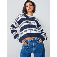 Save 40% on the Tommy Jeans Striped Logo Sweater - Blue from Very. We found this offer yesterday, so hurry whilst stocks last!