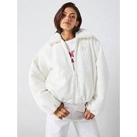 Tommy Jeans Faux Fur Bomber Jacket Size & Fit Regular fit Available in sizes XS - XL Details Faux Fur Bomber Jacket by Tommy Jeans White Faux fur Collar Zip fastening Side seam pocket Long sleeves Embroidered logo Material & Care Material Content: RECYCLED POLYESTER (70%), POLYESTER PES (30%)