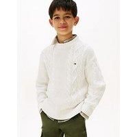 Tommy Hilfiger Boys Cotton Cable Mix Graphic Sweater - Ivory Silk Size & Fit Regular fit Available in sizes 4 years - 16 years Details Boys Cotton Cable Mix Graphic Sweater - Ivory Silk by Tommy Hilfiger Off White Cable knit Long sleeves Crew neck Small logo '85' on back Material & Care Material Content: 100% Cotton Washing Instructions: Machine Washable