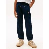 Tommy Hilfiger Boys Flag Sweatpants - Dark Size & Fit Straight fit Available in sizes 4 years - 16 years Details Boys Flag Sweatpants - Dark - Night Navy by Tommy Hilfiger Navy Elasticated waist Drawstring fastening Side slip pockets Back pocket Mid rise Cuffed Material & Care Material Content: 80% Cotton, 20% Recycled Polyester Washing Instructions: Machine Washable