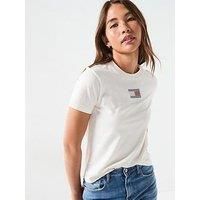 Tommy Jeans Varsity Diamante Logo T-Shirt Size & Fit Regular fit Available in sizes XS - 3XL Model is 5'10" and wears a UK size 8 Details Varsity Diamante Logo T-Shirt by Tommy Jeans White Diamante logo Short sleeves Crew neckline Material & Care Material Content: REGENERATIVE COTTON (100%) - Manufacturers part number: DW0DW21965-YBH[XL ]