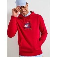 Tommy Hilfiger Linear Flag Graphic Hoodie Size & Fit Regular fit Available in sizes S - 3XL (S:36"-38", M: 40", L:42", XL:44", 2XL:46", 3XL:48") Details Linear Flag Graphic Hoodie by Tommy Hilfiger Red Logo print Long sleeves Front kangaroo pocket Drawstring hood Material & Care Material Content: 100% Cotton Washing Instructions: Machine Washable
