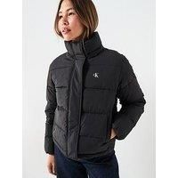 Calvin Klein Jeans Hooded Monologo Puffer Coat Size & Fit True to size - order your usual size Regular fit Regular length Available in sizes XXS - XXL Details Hooded Monologo Puffer Coat by Calvin Klein Jeans Black Padded Logo to the left chest Hooded Concealed zip-up fastening Side pockets Long sleeves Material & Care Material Content: POLYESTER PES (100%) - Manufacturers part number: LV047D513GUB1XL