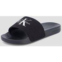 Calvin Klein Monogram Sliders Size & Fit True to size - order your usual size Standard fit Available in sizes 36 - 41 (EU 36:UK 3, EU 37:UK 4, EU 38:UK 5, EU 39:UK 6, EU 40:UK 7, EU 41:UK 8) Details Monogram Sliders by Calvin Klein Black Open toe detail Wrap around strap Slip on fastening Printed logo to strap Printed logo to cushioned footbed Material & Care Washing Instructions: Wipe Clean