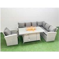 Fire Pit Table: Integrated fire pit for warmth and ambiance. Tempered Glass: Features a 5mm thick transparent tempered glass top. Space-Saving: Includes a 3-seater sofa, armchair, and dining table. Ergonomic Design: High back and reclining features for ultimate comfort. Easy Assembly: Quick setup with minimal tools required. Plush Cushions: 8cm thick cushions with removable covers for easy cleaning. Durable Frame: Galvanized steel tube frames resist rust. Handcrafted Rattan: Made with light grey mixed r...