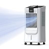 - ⦗ EASY TO CARRY & USE ⦘ Easy to use pop up touchscreen controls with magnetic remote control. Its sleek, compact, and powerful design makes it easily operated in low and tight spaces. Wheels help for great mobility. Its ergonomic dial knobs provide easy operation and elegant looks. Air Cooler, humidifier and air cleaner great in well ventilated large rooms and commercial spaces.