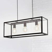 Charterhouse – a three-bulb hanging light with a vintage look A square lampshade comprising one black-painted steel frame and one clear pane of glass makes the Charterhouse hanging light a real eye-catcher above the dining table. This lampshade perfectly sets the scene for the light itself (E27 socket for traditional light bulbs, LED lamps or energy-saving bulbs). The Charterhouse hanging light looks particularly stunning when used with traditional or globe carbon filament bulbs. The vintage-style hanging lamp can be integrated into many different interior designs and provides bright lighting. Energy efficiency class:A++ - Manufacturers part numbers: 49393|558PL