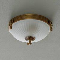 Noble ceiling lamp Rocca for glamorous moments The bronze-colored metal elements of this impressive ceiling lamp have been designed intricately and in detail, which gives Rocca a unique effect. The lamp, which is equipped with an opal glass cover, illuminates the room without glare and emits soft light, creating a wonderful ambience.