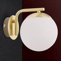 Madis wall light with a spherical lampshade made of glass The Madis wall light has a classic metal frame with a matt brass finish and an opal white glass lampshade in a spherical shape. This timeless light source is suitable for installation in the hallway or in the living area or a bedroom. It can be fitted with an E14 bulb with a wattage of up to 40 watts and is also perfect for combining with other lamps from the series.