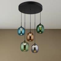 Minara LED pendant light colour variety meets warm white light for stylish living spaces The Minara LED pendant light combines modern design with a fascinating colour combination of multicoloured glass and matt black metal. The five light sources provide uniform illumination and add stylish accents to living and dining areas. The permanently installed LEDs emit a pleasant warm white light (3,000 K), which creates an inviting atmosphere and is also energy-efficient. The integrated 3-step dimming function...