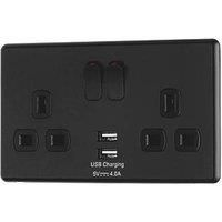 Rocker jet black socket is sleek and contemporary and will switch up your style. The front plate is screwless and removable which is handy when you come to decorate. Terminals are colour coded with captive screws to aid installationThis product is a 13amp 2 gang switched socket with 2x4A USB. Complete the look with other Rocker switches and sockets available in jet black - Manufacturers part number: 1313GBMBK