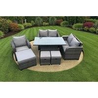 This deluxe reclining rattan sofa set is a great addition to patio or garden, made of high quality PE rattan and durable galvanized steel construction for sturdiness and long lasting.Durability ,and can be put outdoor all year round. Perfect set to sit round with your family and friends. Set Dimensions: 1 x Big Footstool:65Lx65Wx34H cm 2 x Fully Assembled small footstools:40L x 40w x 34H cm 1 x Reclining Chairs: 74L x 67W x 79H cm 2 x Lovesofa :124Wx69Dx79H cm 1 x Lifting Rising Table : 140L x 80W x 68/...