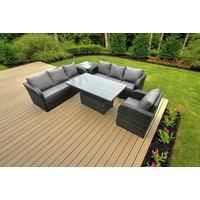 This deluxe reclining rattan sofa set is a great addition to patio or garden, made of high quality PE rattan and durable galvanized steel construction for sturdiness and long lasting.Durability ,and can be put outdoor all year round. Perfect set to sit round with your family and friends. Set Dimensions: 1 x Side coffee table:65L x 65W x 66H cm; 1 x Reclining Chairs: 74L x 67W x 79H cm; 2 x 3 Seater Sofa : 177W x 67D x 79H cm; 1 x Lifting Rising Table : 140L x 80W x 68/48H cm (height up 68,down 48); Dark...