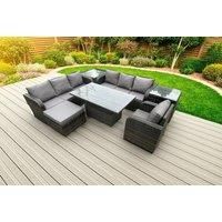 This deluxe reclining rattan sofa set is a great addition to patio or garden, made of high quality PE rattan and durable galvanized steel construction for sturdiness and long lasting.Durability ,and can be put outdoor all year round. Perfect set to sit round with your family and friends. Set Dimensions: 2 x Side coffee table:65L x 65W x 66H cm; 1 x Big Footstool:65L x 65W x 34H cm; 1 x Reclining Chairs: 74L x 67W x 79H cm; 2 x 3 Seater Sofa : 177W x 67D x 79H cm; 1 x Lifting Rising Table : 140L x 80W x ...