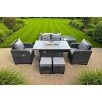 Set dimensions: 1x Side table:65L x 65w x 66H cm 2x Fully assembled small footstools:40L x 40w x 34H cm 1x Love Sofa Size: 124W x 67D x 79H cm 2x Reclining Chairs : 74L x 67W x 79H cm 1x Firepit Table : 140L x 80W x 69H cm Dark grey mixed rattan with dark grey fabric .Color may vary due to light or monitor .we are unable to return the item due to this problem .Please consult before purchase if you have requirment on color saturation.The 2 armchairs are adjustable, you can adjust the inclination of the c...