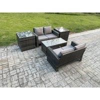">>This 4 seater deluxe rattan sofa set is a great addition to patio or garden, made of high quality PE rattan and durable galvanized steel construction for sturdiness and long lasting.Durability ,and can be put outdoor all year round. >>Set Dimensions: 2 x Side coffee table size65L x 65W x 66H cm; 2 x 2 Seater sofas size: 124L x 70W x 74H cm; 1 x Coffee Table Size: 105L x 50W x 48H cm; >> Dark grey mixed rattan with dark grey fabric .Color may vary due to light or monitor .we are unable to return the ...