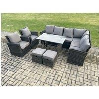 This deluxe high back rattan corner sofa set is a great addition to your patio or garden, made of high quality PE rattan and durable galvanized steel construction for sturdiness and long lasting.Durability ,and can be put outdoor all year round. Perfect set to sit round with your family and friends. Set Dimensions: 2 x Small fully assembled footstools £40L x 40W x 34H cm 2 x Chair: 74W x 69D x 79H cm 1 x 3 seater sofa with two arm : 170L x 69D x 79H cm 1 x 3 seater sofa with single arm: 160L x 69D x 79H...