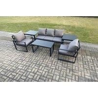 This deluxe aluminium outdoor sofa set is a great addition to your patio or garden, made of high quality Alloy aluminium and powder coating for sturdiness and structural durability. Set Dimensions: 1 x 3 Seater Sofa: 166W x 73D x 78H cm 2 x Chair Size: 74L x 70W x 78H CM 2 x Side coffee table 68L x 68W x 59H cm 1 x Oblong Coffee table : 97L x 52W x 51H cm Dark grey powder coated with dark grey fabric .Color may vary little due to light or monitor .we are unable to return the item due to color problem .p...