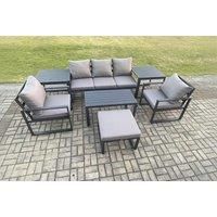 This deluxe aluminium outdoor sofa set is a great addition to your patio or garden, made of high quality Alloy aluminium and powder coating for sturdiness and structural durability. Set Dimensions: 1 x 3 Seater Sofa: 166W x 73D x 78H cm 2 x Chair Size: 74L x 70W x 78H CM 2 x Side coffee table 68L x 68W x 59H cm 1 x Big footstool 60L x 60W x 35H cm 1 x Oblong Coffee table : 97L x 52W x 51H cm Dark grey powder coated with dark grey fabric .Color may vary little due to light or monitor .we are unable to re...