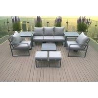 This aluminium Outdoor garden furniture set can be used both indoors and outdoors,with high quality aluminium Frame construction for sturdiness and long lasting. it can also be placed on the patio or balcony,The design of this patio lounge sofa set is a perfect blend of country chic and modern minimalism, adding an elegant touch to your house. Set Dimensions: 1 x 3 Seater Sofa: 166W x 73D x 78H cm 2 x Chair Size: 74L x 70W x 78H cm; 2 x Side coffee table 68L x 68W x 59H cm; 2 x Fully Assembled Stool Siz...