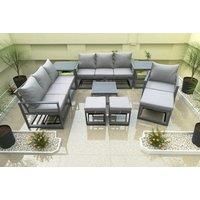 "This aluminium outdoor garden furniture sofa set has plenty of space for 10 people to sit, with coffee table to hold food, drinks and more, a perfect addition to your patio, garden, backyard, pool and other indoor and outdoor spaces. Set Dimensions: 2 x 3 Seater Sofa: 166W x 73D x 78H cm; 1 x Chair Size: 74L x 70W x 78H cm; 2 x Side coffee table 68L x 68W x 59H cm; 1 x Big footstool 60L x 60W x 35H cm; 2 x Fully Assembled Stool Size: 40L x 40W x 36H cm; 1 x Square Coffee table : 60L x 60W x 35H cm; It...