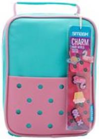 Packed with style and adventure, our Smash insulated kids lunch bag is designed to keep meals fresh and exciting. The front features a charm insert area where kids can customise their lunch bag with their favourite fun charms. The bag comes with 4 exclusive charms to get them started, and theres plenty of room for even more as they collect and swap with friends. Polyester. BPA free. Size: H24, W18, D9.2cm. Internal H23, W17, D8.2cm. Wipe clean. EAN: 9325448228030. Manufacturers 1 year guarantee.