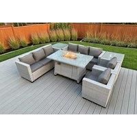 Pe Rattan Garden Sofa Set Fire Pit Table - Grey