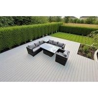 This deluxe rattan rising sofa dining set is a great addition to patio or garden, made of high quality PE rattan and durable galvanized steel construction for sturdiness and long lasting.Durability ,and can be put outdoor all year round. Set Dimensions:£1 x Left Single armrest Sofa Size: 167W x 65D x 66H cm£1 x Right Single armrest Sofa Size: 167W x 65D x 66H cm£1 x Side coffee table £65L x 65W x 66H cm£1 x PC Rising dining table: 140L x 80W x 68/48H cm (height up 68, down 48)£1 x Arm chairs size: 74L x...