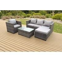 Set Dimensions: 1 x Three Seater Sofa : 177W x 65D x 66H cm£ 1 x Oblong Coffee table: 85L x 50W x 37H cm£ 1 x Chair: 74L x 65w x 66H cm£ 1 x Footstool: 65L x 65W x 34H cm£ Dark grey mixed rattan with dark grey fabric .Color may some difference due to light or monitor .we are unable to return the item due to color problem .the product is delivered on pallet,to kerbside only