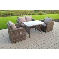 2 x Reclining Chairs: 74L x 67W x 79H cm 1 x Love Sofa : 124W x 67D x 79H cm 1 x Dining Table £110L x 70W x 70H cm Dark grey mixed rattan with dark grey fabric ,Color may some difference due to light or monitor ,we are unable to return the item due to color problem The 2 armchairs are adjustable, you can adjust the inclination of the chair back from 90-130 through the button Delivery will be kerbside only.courier will call you or send text message about delivery date ,please note text message or phone c...