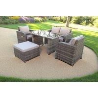 2 x Reclining Chairs: 74L x 67W x 79H cm 1 x Footstool: 65L x 65w x 34H cm 1 x Love Sofa : 124W x 67D x 79H cm 1 x Black Tempered Glass Table £140L x 80W x 70H cm Dark grey mixed rattan with dark grey fabric ,Color may some difference due to light or monitor ,we are unable to return the item due to color problem The 2 armchairs are adjustable, you can adjust the inclination of the chair back from 90-130 through the button Delivery will be kerbside only.courier will call you or send text message about de...