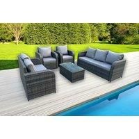 Set Dimensions: 1 x 3 Seater Sofa : 177W x 67D x 79H cm; 1 x Love Sofa : 124W x 67D x 79H cm; 1 x Square Coffee Table £65L x 65W x 34H cm; 2 x Reclining Chairs: 74L x 67W x 79H cm; Dark grey mixed rattan with dark grey fabric .Color may some difference due to light or monitor .we are unable to return the item due to color problem . The 2 armchairs are adjustable, you can adjust the inclination of the chair back from 90-130 through the button.the product is delivered on pallet,to kerbside only.