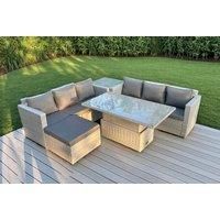 Set Dimensions: 2 x Three Seater Sofa : 177W x 65D x 66H cm 1 x Adjustable Table £140L x 80W x 68/48H cm (up 68 cm down 48 cm) 1 x Side Coffee Table: 65L x 65W x 66H cm 1 x Big Foot Stool: 65L x 65w x 34H cm Light grey mixed rattan with dark grey fabric .Color may some difference due to light or monitor .we are unable to return the item due to color problem .