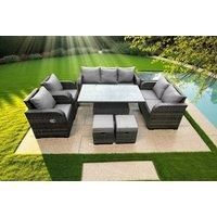 Set Dimensions: 1 x Side coffee table 65L x 65W x 66H cm; 2 x Fully Assembled small footstools:40L x 40w x 34H cm; 1 x 3 seater Sofa Size: 177W x 67D x 79H cm; 1 x Lovesofa :124W x69Dx79H cm; 2 x Reclining Chairs: 74L x 67W x 79H cm; 1 x Lifting Rising Table : 140L x 80W x 68/48H cm (height up 68,down 48); Dark grey mixed rattan with dark grey fabric .Color may some difference due to light or monitor .we are unable to return the item due to color problem . The 2 armchairs are adjustable, you can adjust ...