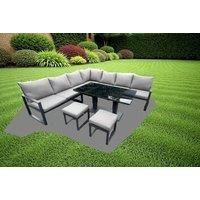 Set Dimensions: 1 x Left Sofa with single armrest: 125W x 70D x 78H cm£ 1 x Right Sofa with single armrest: 125W x 70D x 78H cm£ 1 x PC Adjustable dining table : 140L x 80W x 48/70H cm (Low 48cm Height 70 cm With Black Tempered Glass)£ 1 x Corner Sofa£70L x 70W x 78H cm£ 2 x Armless Sofa Size: 60L x 70W x 78H CM£ 2 x Fully assembled stool Size: 40L x 40W x 36H CM£ Dark grey powder coated with dark grey fabric .Color may vary little due to light or monitor .we are unable to return the item due to color p...