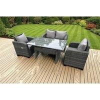 Set dimensions: 2 x Reclining chairs Size: 74W x 69D x 79H cm 1 x Love Sofa Size: 124W x 67D x 79H cm 1 x dining Table Size: 140L x 80W x 69H cm Dark grey mixed rattan with dark grey fabric .Color may vary due to light or monitor .we are unable to return the item due to this problem .Please contact us before purchase if you have requirements on color saturation . The 2 armchairs are adjustable, you can adjust the inclination of the chair back from 90-130 through the button .the product is delivered on p...