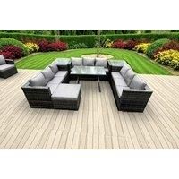 Set Dimensions: 3 x 3 Seater sofa with double armrest: 177W x 65D x 66H cm; 1 x Dining table size: 110L x 70W x 70H cm; 2 x Coffee table: 65L x 65W x 34H cm; 1 x Big footstool £65L x 65W x 34H cm; Dark grey mixed rattan with dark grey fabric .Color may vary due to light or monitor .we are unable to return the item due to this problem .Please consult us before purchase if you have requirements on color saturation,the product is delivered on pallet,to kerbside only.