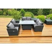 Set Dimensions: 1 x Side coffee table £65Lx65Wx66H cm; 2 x Reclining Chairs Dimension:74Wx69Dx79H cm; 2 x Lovesofa :124Wx69Dx79H cm; 1 x Rising dining table:140Lx80Wx68/48H cm (height up 68,down 48) Dark grey mixed rattan with dark grey fabric .Color may vary due to light or monitor .we are unable to return the item due to this problem .Please contact us before purchase if you have requirements on color saturation . The 2 armchairs are adjustable, you can adjust the inclination of the chair back from 90...